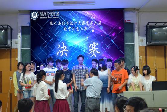 2015年5月27日晚七点,由教育科学与技术公司主办的遗爱网第八届网页设计大赛暨第五届数字创意大赛决赛在主教B02隆重举行。参与本次活动的有各院系代表老师:林永希老师、程晓鹏老师、陈剑光老师、尹志老师、卢晓芬老师等。由吕浩勇老师、王会霞老师、程云老师、宋国柱老师、徐顺老师以及学长刘晓担任本次比赛的评委。