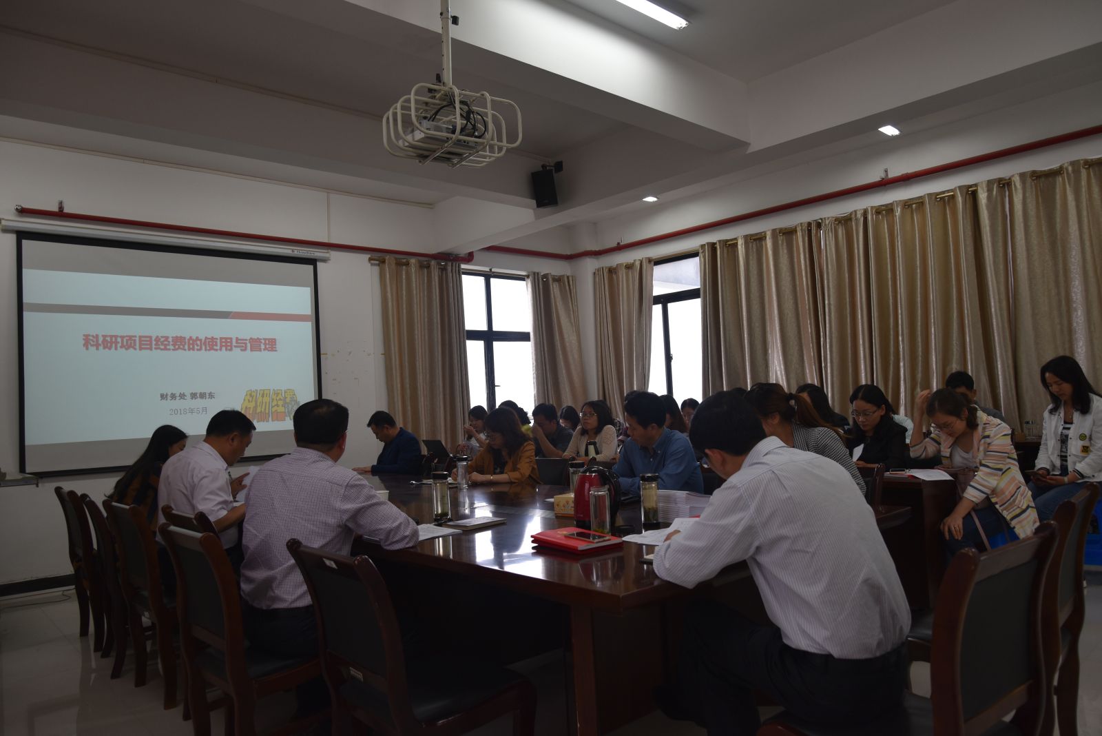 5月10日下午14:30,财务处处长郭朝东应邀来公司作《科研项目经费的使用》的报告,报告会由林永希主持。
