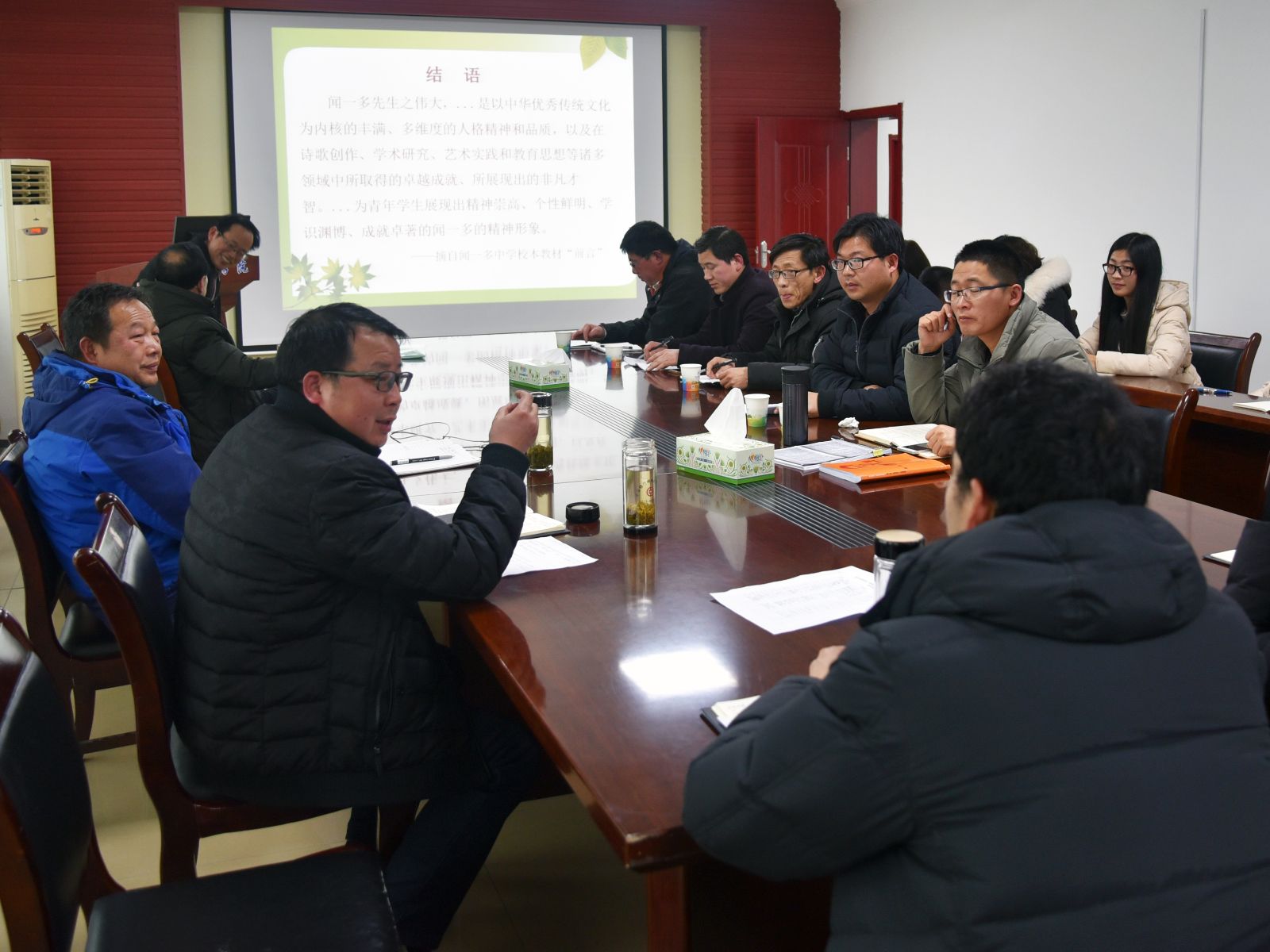 林永希最后进行了总结发言,他认为按照“红烛精神进校园”项目总体设计计划安排,该项目要完成“六个一”任务,编写一本校本教材只是其中一个“一”,为高质量推进项目还有大量的工作要做,他希望项目组成员再接再厉,为弘扬黄冈特色文化再创佳绩。