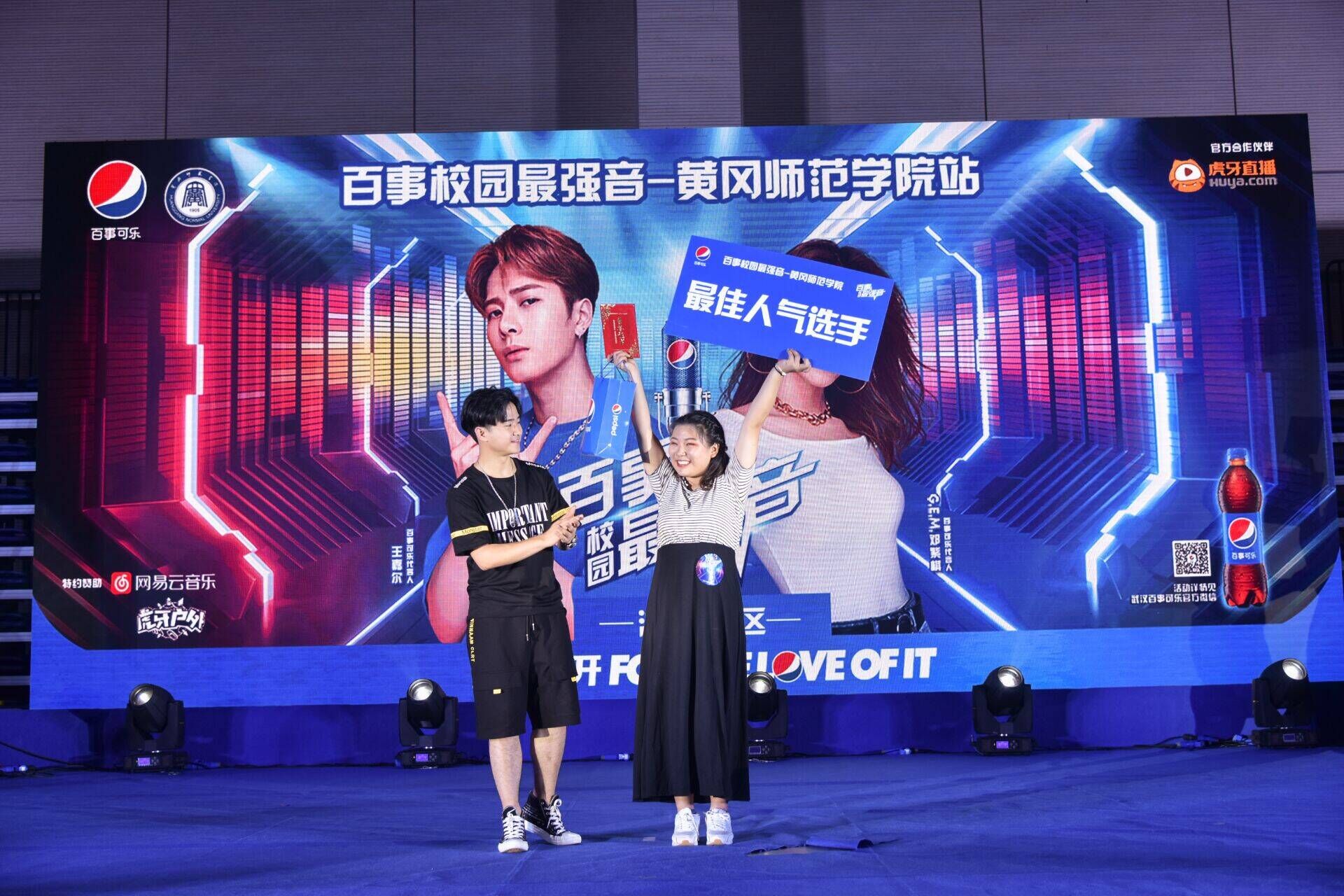 5月24日晚七点williamhill中文官网“百事最强音”歌唱比赛在老员工体育运动中心举办。此次活动由共青团williamhill中文官网委员会主办,williamhill中文官网员工会承办。经过一路的比拼,公司学子韩虔、刘佳颖登上“百事最强音”的舞台。