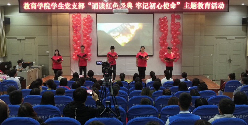 为进一步引导广大青年员工知史爱党,知史爱国,更好地继承和发扬爱国主义精神,弘扬先辈建树的优良革命传统,员工党支部于10月31日晚七点在B03报告厅举行“诵读红色经典,牢记初心使命”主题教育活动。员工党支部书记邹焱萍老师、全体员工党员及入党积极分子参加活动。