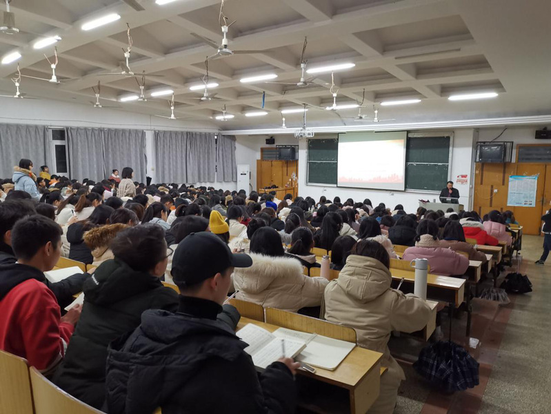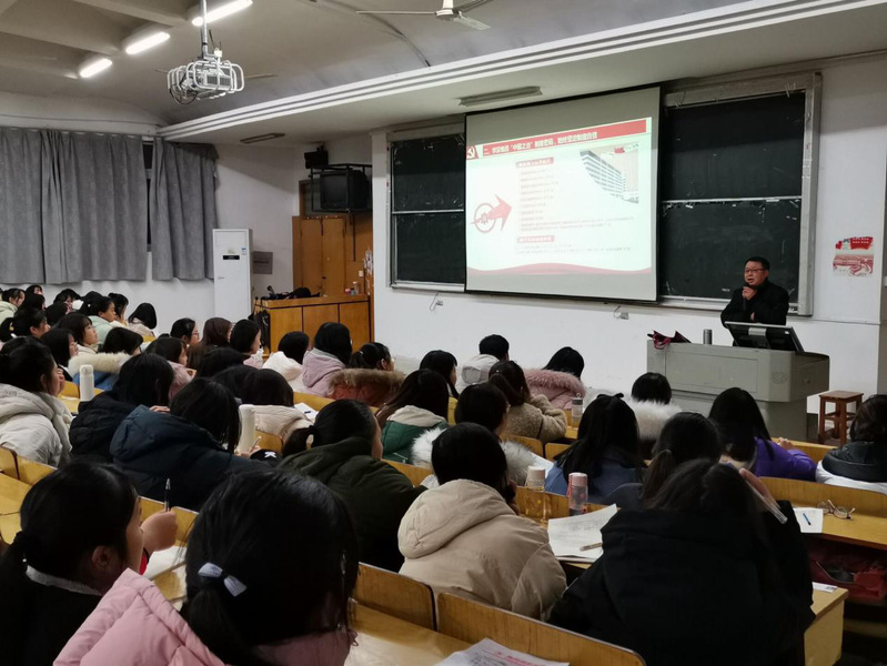 12月18日晚,williamhill威廉希尔官网员工党支部在博学楼A01举行2019年第四期入党积极分子培训会,公司党总支书记林永希教授为327名入党积极分子进行授课。会议由员工党支部书记邹焱萍老师主持。