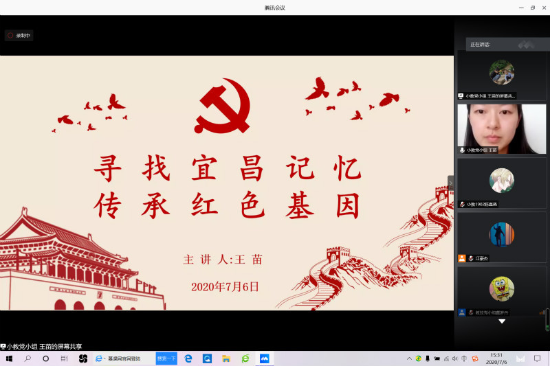 7月6日下午,员工党支部在线上开展 “红色记忆”专题党课活动,活动由员工党支部书记邹焱萍老师主持,全体员工党员以及120余名团员在线听课。
