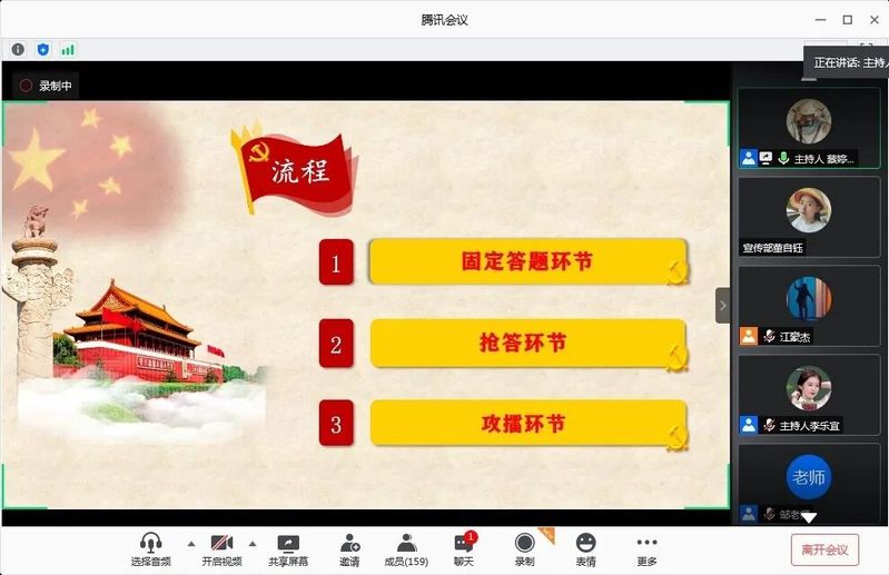 “学党史国史,守初心使命”党史国史知识挑战赛活动于7月13日-17日在线上面向全校员工开展。挑战赛分为初赛、复赛、决赛,全校共有960余名员工报名参加。初赛、复赛均在线上以问卷链接形式限时答题,经初赛、复赛比拼角逐出11名选手进入决赛。决赛采用线上实时答题的方式,共分为固定答题、抢答、攻擂三个环节,最后依据选手的总成绩排名决出一等奖1名、二等奖2名、三等奖3名、优秀奖5名。决赛共有160余名各院员工在线观赛,院员工党支部书记邹焱萍老师出席活动。邹老师在活动最后对获奖同学表示祝贺,并希望通过此次比赛,能让公司广大青年更加深入的学习了解党史国史,在学习党史国史中明志明理明德明责,坚定跟党走的决心,用责任担当唱响新时代青春之歌!