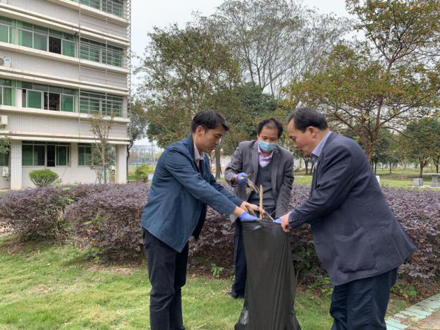 活动伊始,参与人员在心理健康中心前集合,明确各自分工,在公司领导老师带领下按照各自分工安排迅速行动。有的拿垃圾袋、有的捡垃圾、有的拿火钳......老师同学们热情高涨,不怕脏不怕累,脸上充满着灿烂的笑容。为公司服务,为师生服务,克己奉公,乐于奉献。经过一下午的团结协作,给大家呈现了干净整洁和焕然一新的校园环境,出色高效地完成了此次活动。