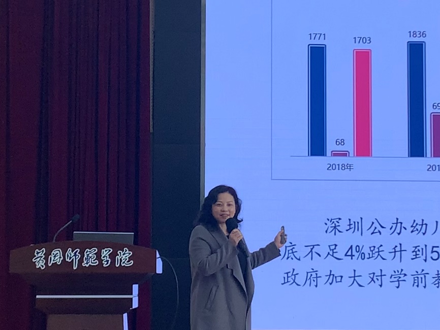 会上,程容园长从“看深圳”、“品龙华”、“谈幼教”三个方面介绍了深圳的地理位置、环境优势以及深圳的学前教育行业发展背景;王媛园长从“一张照片”、“一套书籍”、“一枚徽章”来讲述自己的成长经历;董雨果老师分享了自己在龙华的感受、成长以及收获。最后胡书记进行总结。