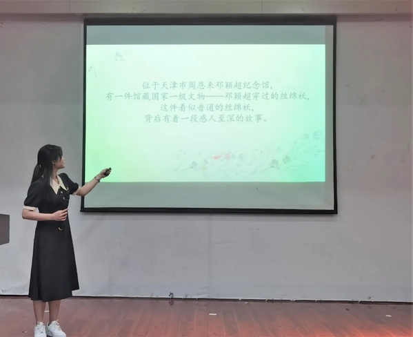 学前1803班陈雨涵为我们讲述了在天津的周恩来邓颖超纪念馆陈列着一件国家一级文物——丝棉袄。这件看似普通的棉袄背后却有着一段感人至深的故事。一件普通的丝绵袄,针针缝入着人民对老一辈革命家的爱戴。