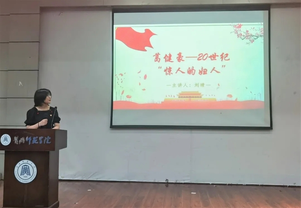 小教1802班刘晴向我们讲述了一位特殊母亲的故事,年逾50冲破重重阻力,倾家荡产,率儿女远渡重洋,赴法国勤工俭学。归国后,母亲继续办学,将儿女一个个培养成革命志士。这位伟大的女性就是蔡和森、蔡畅、向警予、李富春共同的母亲葛健豪。