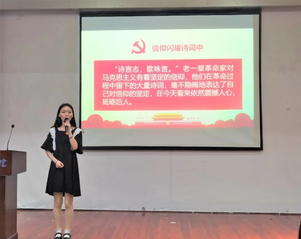 学前1801班吴思懿向我们讲述了《信仰闪耀诗词中》的故事,老一辈革命家对马克思主义有着坚定的信仰,他们在革命过程中留下的大量诗词,毫不隐晦地表达了自己对信仰的坚定,在今天看来依然震撼人心,砥砺后人。