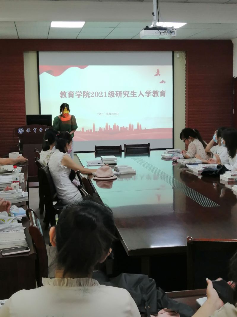 20级教育技术学专业的李坤艳、唐文璐、贺寒月,教育管理专业的余杏琪、王晓温同学介绍了自己的学习经验,勉励大家努力学习,专注科研。