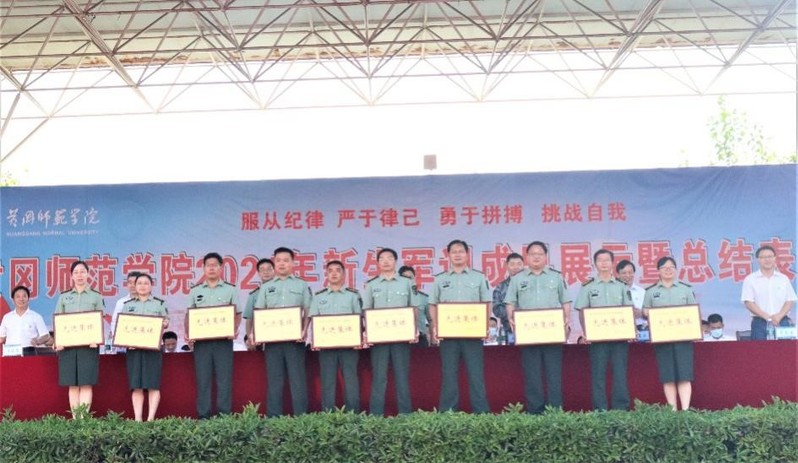 随后进行了军训先进集体和先进个人的表彰。在公司师生的共同努力下,公司获williamhill中文官网2021年军训宣传先进单位、williamhill中文官网2021年军训内务整理先进集体、卢晓芬老师荣获先进个人奖项。