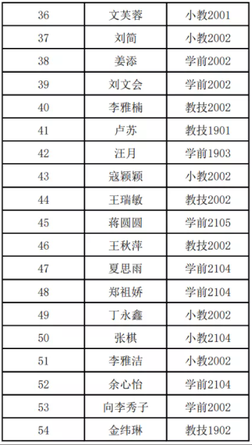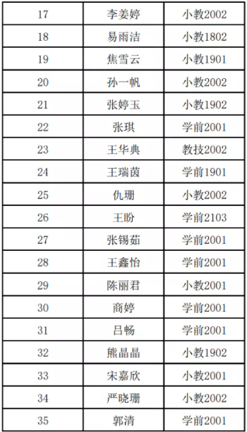 优秀学员:学前2001 熊泽纯 学前2001 郭雪雯 学前2002 李梦瑶 教技2002 李怡然