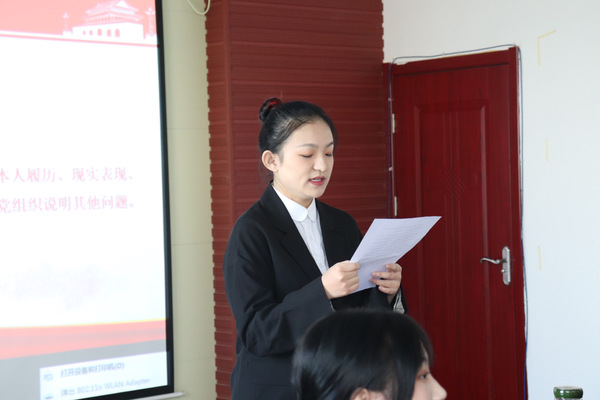 首先,邹老师报告出席会议的党员人数,提出会议的议题及会议的具体要求。会议正式开始,发展对象分别从入党的动机、对党的认识、本人履历等方面向党组织进行汇报,两位入党介绍人介绍发展对象相关情况,并对其能否入党表明意见。随后,与会党员进行讨论,采取无记名投票表决的方式进行表决。表决结束后,19位新发展预备党员分别向大会表达了自身存在的问题以坚定的入党决心,努力的向党组织靠拢。