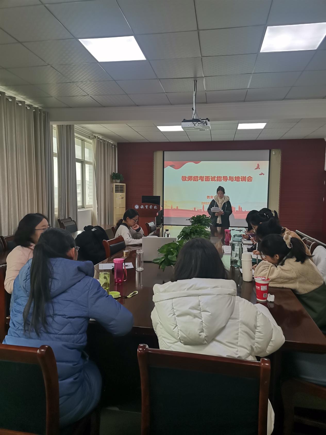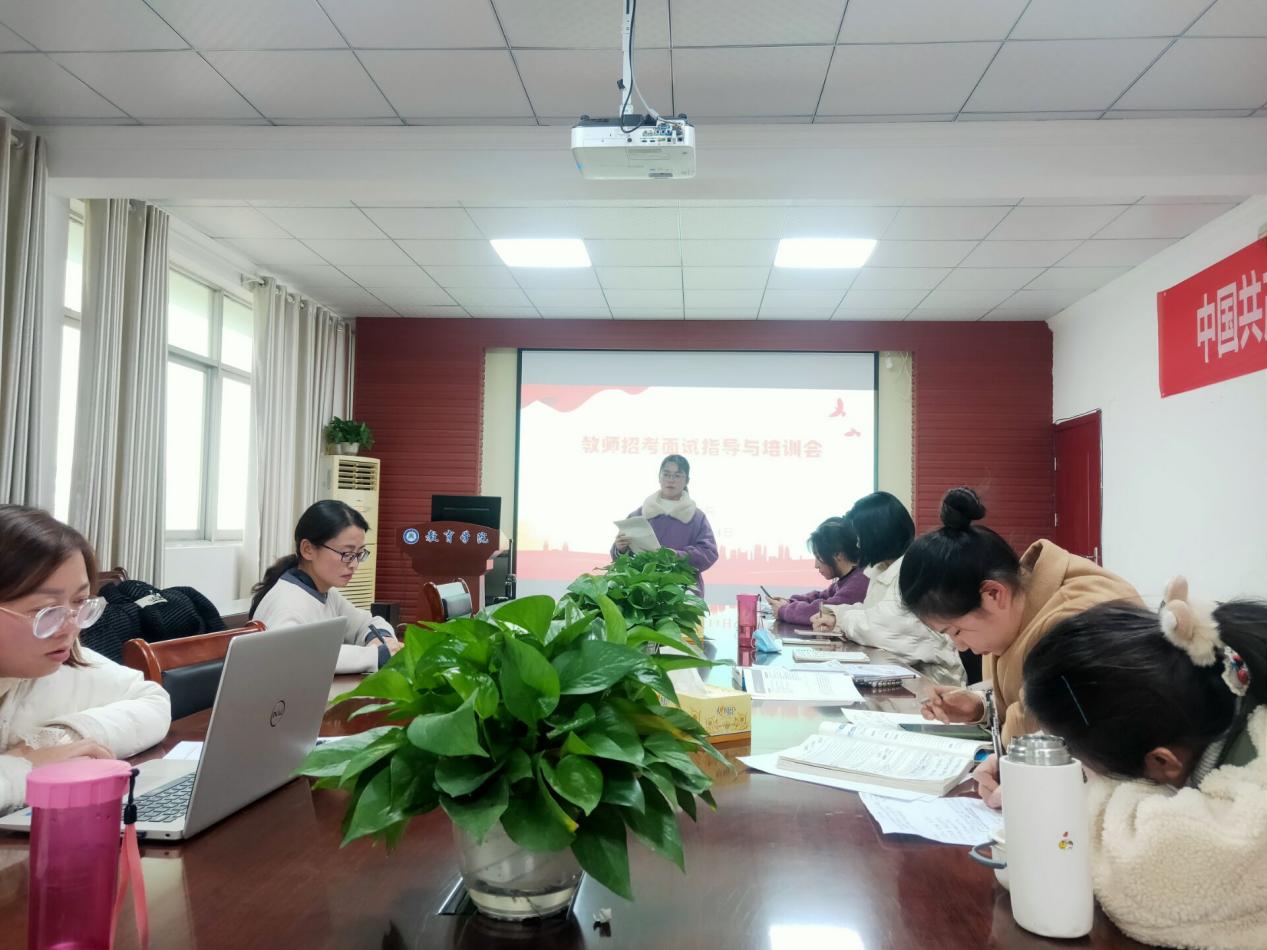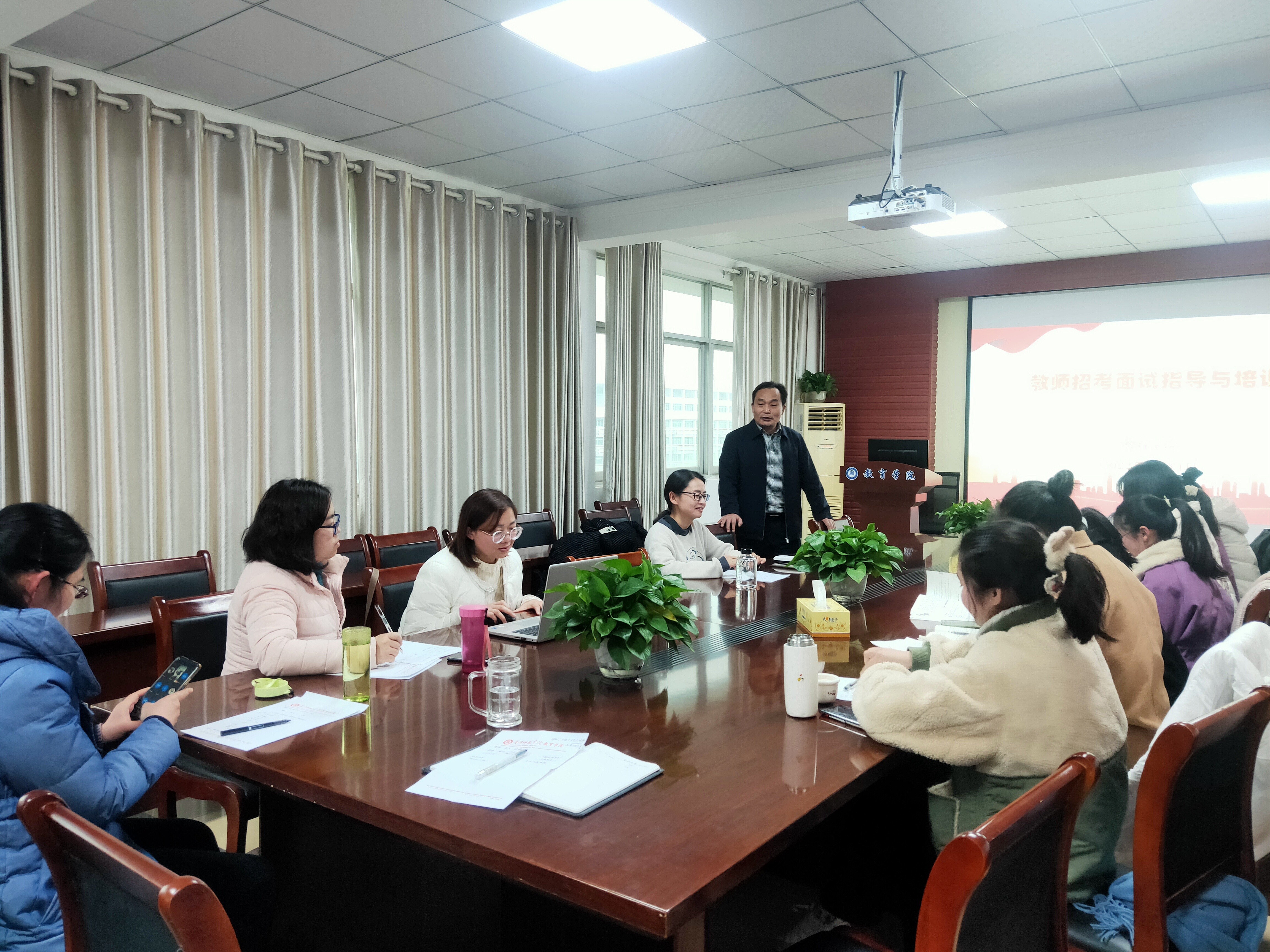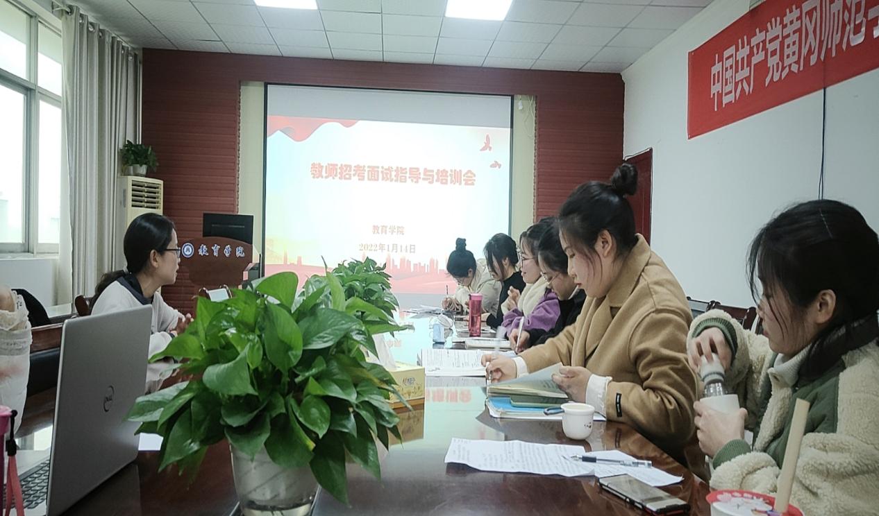 williamhill威廉希尔官网学前教育专业于1月14日下午在致远楼616会议室开展针对2022年黄州区教师招考开展面试技巧辅导活动。培训由湖北名师工作室杨方老师担任主讲和指导老师,学前教育教研室主任路雪主持。学前教育专业大四员工10余人参加了现场培训,50余名员工在线上参加了培训。