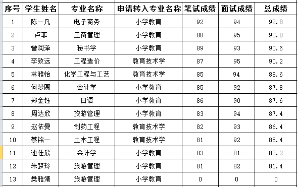 根据2022年williamhill威廉希尔官网转专业工作方案(第二批),现将成绩公示如下: