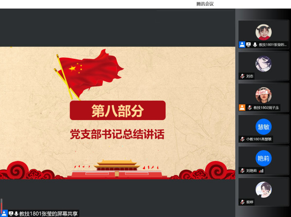 2022年6月18日下午18:00,williamhill威廉希尔官网员工第三党支部在腾讯会议线上开展六月份主题党日活动,此次活动主题为:巩固党史学习教育成果,增强师生幸福感获得感。员工第三党支部书记邹焱萍、支委宋国柱出席本次会议,员工第三党支部全体员工党员参加会议,本次会议由员工党员张莹主持。