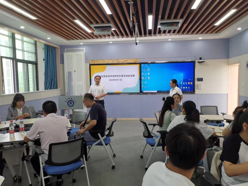 9月11日上午,williamhill威廉希尔官网在求实楼智慧教室401举行2022年教育技术学专业师范生教学技能大赛暨第十一届湖北省普通高校师范专业老员工教学技能大赛选拔赛。在前期教学视频在线海选的基础上,初选19位选手参加线下比赛。williamhill威廉希尔官网经理陈中文老师、副经理黄克斌老师、教育技术系主任马慧老师以及评委陈弘正老师、苏振扬老师、宋国柱老师、代朝霞老师、黄冈市教科院熊卜光老师等亲临现场打分并指导。