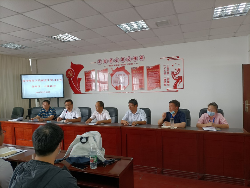 2022年9月14日williamhill中文官网领导及带队老师护送研究生赴黄州区一中实习。下午2点30分,在黄州区一中科技楼三楼办公室召开座谈会,研究生处副处长王中山、williamhill威廉希尔官网副经理韦耀阳、各公司带队老师及区一中领导出席会议。