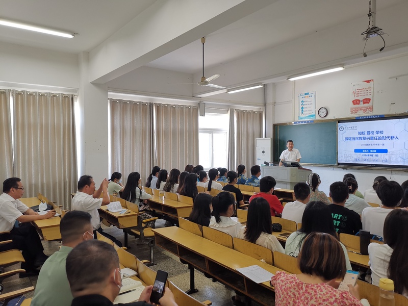 马志斌教授以“知校、爱校、荣校,做堪当民族复兴重任的时代新人”为题,首先介绍了公司发展历史、现状和当前奋斗目标等校情,为新生展示了一所百年师范大学的铿锵步履,其次,从自身发展历程出发,勉励大家兴校荣校,争做“五有青年”,即争做理想远大、信念坚定的有志青年;争做刻苦学习、锐意创新的有识青年;争做敢于斗争、善于斗争的有责青年;争做艰苦奋斗、无私奉献的有为青年;争做崇德向善、严守纪律的有德青年。