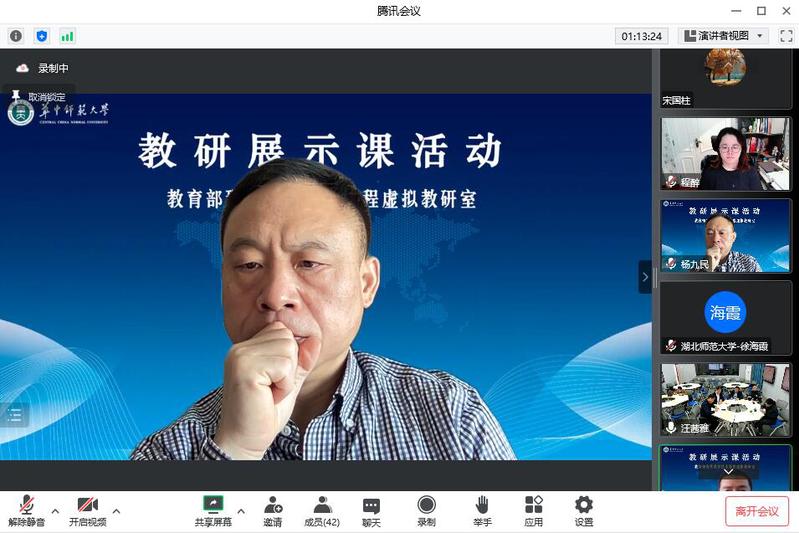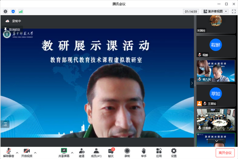 活动最后,williamhill威廉希尔官网经理陈中文教授表示,教育部现代教育技术课程虚拟教研室公开课观摩与研讨活动对推动创新引领课堂教学变革,推进一流“金课”建设具有重要意义。感谢华中师范大学杨九民教授团队搭建平台,也感谢各位专家、各位老师能在百忙之中抽出时间参加本次课程教学的研讨。希望后续继续多开展合作交流,多开展相关研讨活动,支持课堂教学改革创新和“金课”建设。
