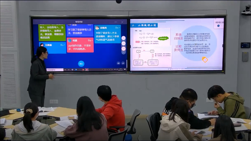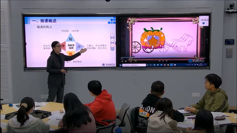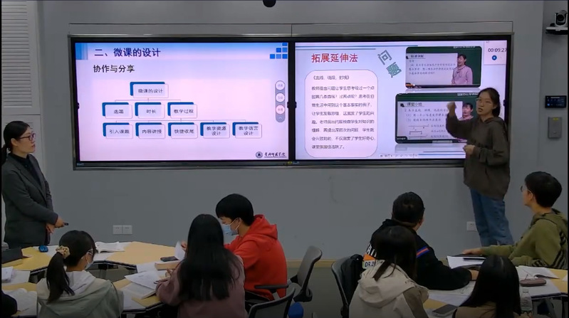 活动首先观摩了公司教育技术学专业教师王艳丽副教授主讲的《现代教育技术应用》课程的“微课教学设计”章节的公开课。课堂采用混合式学习方式展开,基于丰富的微课案例,让员工以小组协作方式探究微课设计过程中的重要环节,在积极参与微课设计的过程中掌握相关原则和方法,为学习微课的制作打下基础。在线上线下互动交流过程中,员工对课堂学习效果给予了充分地肯定评价。通过章节内容的教学,让师范生学会微课的设计与制作,提高师范生信息化教学能力。