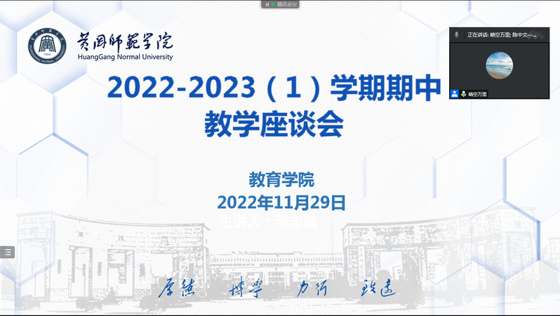 11月29日下午,williamhill威廉希尔官网在线举行2022-2023学年第一学期期中教学座谈会。经理陈中文教授、分管本科教学工作副经理黄克斌、教育技术系主任马慧、学前教育系主任路雪、小学教育系主任沈胜林、教师教育课程教研室主任代朝霞和教学办王飞飞老师参加会议。黄克斌主持会议。