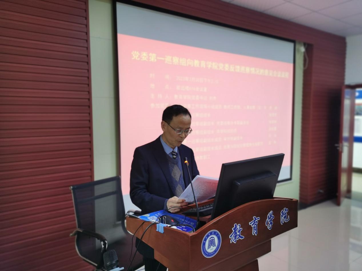 3月30日下午,公司党委第一巡察组向公司党委反馈巡察情况的意见会在致远楼616会议室召开,党委第一巡察组组长余国宇反馈关于对公司党委巡察情况的意见;公司党委巡察领导小组成员、教师工作部、人事处部(处)长徐峰就抓好整改工作提出要求,公司党委书记刘杰主持反馈会并做表态发言。