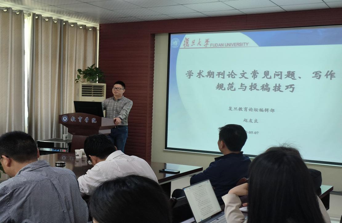 第二场,CSSCI期刊《复旦教育论坛》的编辑部主任赵友良老师则对《学术期刊论文的常见问题、写作规范与投稿技巧》做了专题分享。他分别从“学术期刊论文常见问题”、“写作规范”、“投稿技巧”等方面进行了详细讲述,对于公司师生在期刊论文发表方面大有裨益。互动环节中,不少研究生提出了论文写作规范、论文投稿渠道等问题,赵老师都耐心地进行一一解惑。