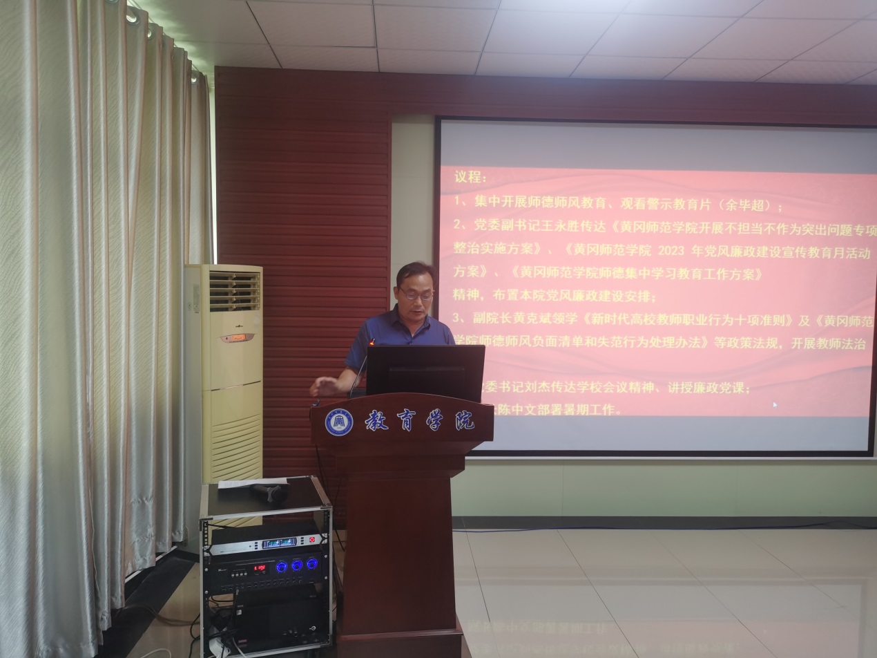 副经理黄克斌领学《新时代高校教师职业行为十项准则》及《williamhill中文官网师德师风负面清单和失范行为处理办法》等政策法规,开展教师法治教育。