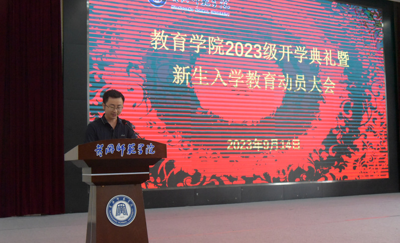 第三项议程,由教师代表岳涛博士发言,他肯定了新生努力学习后取得的傲人成效,希望2023级新生能够在学习长河中一直保持热情,扬帆远航。