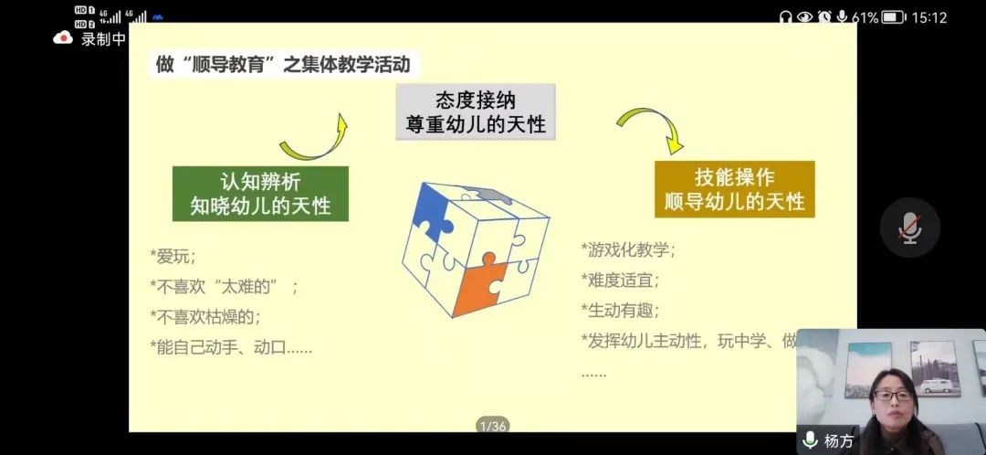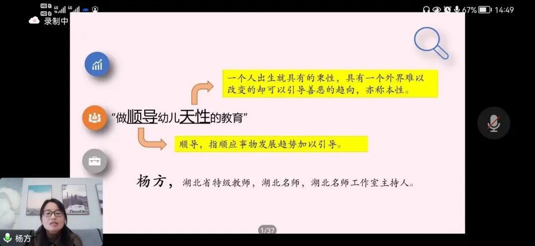 杨方老师曾获多种荣誉称号,并得专家、学员高度认可,同时“杨方学前教育湖北名师工作室”首创“顺导教育”理念,整理优秀案例视频五十余个。
