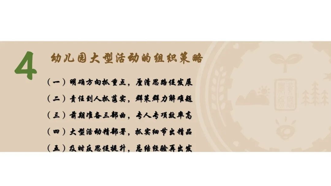 最后,朱老师就组织策略这一话题和同学们展开深入讨论。朱老师告诉同学们,要组织好一场幼儿园大型活动,就得从主题、责任、部署、细节、反思这些方面入手。