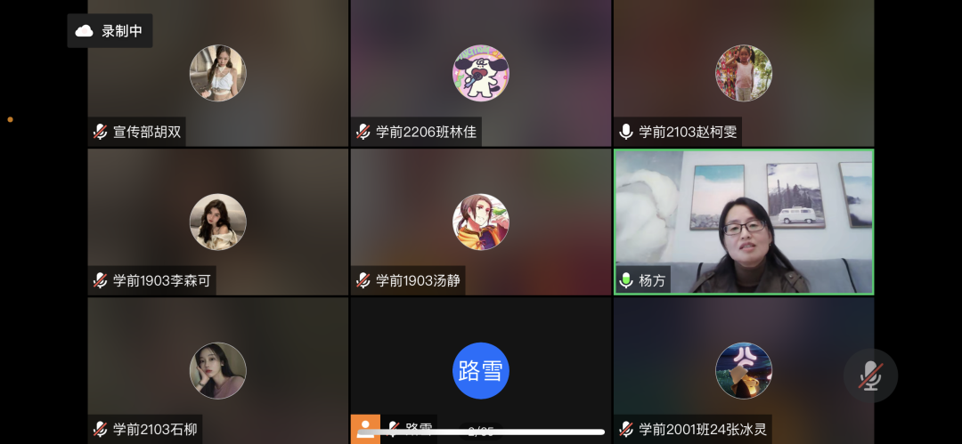 朱亚芳老师于2022年被评选为“黄冈市优秀青年教师”,从事学前教育工作10年,曾获多个荣誉称号。本次活动朱老师就“幼儿园大型活动的组织策略”这一主题与同学们展开了经验分享。