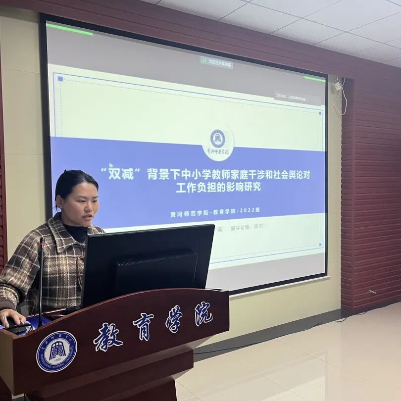 首先,由2022级教育管理专业员工蔡茜、何华美、万子琛、王雪分别就自己选定的毕业论文做了开题报告。