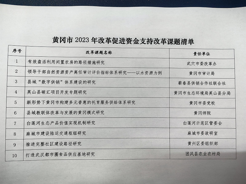 黄冈市委设立此改革项目促进资金,旨在服务落实中央重大部署,面向我省重点工作中产生的改革项目和正在实施的国家级、省级、基层改革项目,建立激励机制,促进改革质效提升,打造一批具有黄冈辨识度,在全省乃至全国立得住、叫得响的优秀改革品牌。经多轮筛选、培育、辅导、评审,最终在全市各行各业中确定了改革项目15个,改革课题10个。本课题为公司今年唯一入选的项目。
