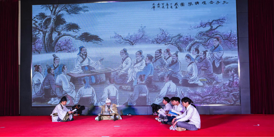 红歌串烧《美丽中国》《歌唱二小放牛郎》《映山红》为我们勾勒着慷慨激昂的铁血丹心,一部小品《海参炒面》告诫黄师学子做人要讲诚信,由韦耀阳老师带领的师生团队共同演绎《穿越时空与孔子对话》,通过文化传承的角度,展现了中华文化的博大精深。