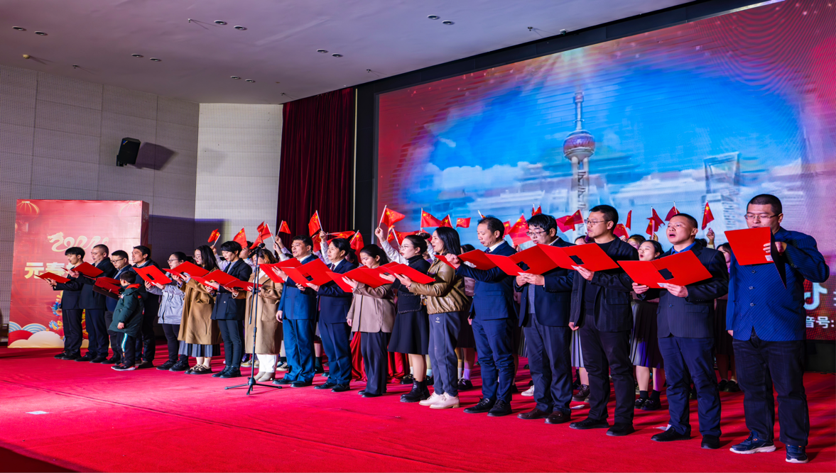 课桌舞《中华五千年》、大合唱《明天会更好》和集体朗诵《我和我的祖国》将晚会推向了高潮。这些节目不仅完美地诠释了其中所蕴含的爱国情怀,还通过紧凑有力的编排,将经典之作展现得淋漓尽致。最后,公司领导班子、老师共同歌唱《我和我的祖国》,将现场氛围推向了最高潮。