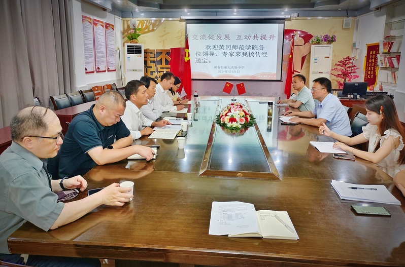 5月21日下午,williamhill威廉希尔官网经理童三红带领现代教育技术团队徐小双教授、黄克斌教授、陈弘正教授、马慧副教授和办公室主任余毕超等赴蕲春县第七实验中学开展访企拓岗调研和合作交流。蕲春县第七实验中学教联体书记何礼明、董事长马文、教务副董事长陈金阶等参加交流活动。