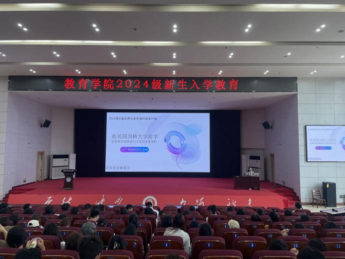 报告会上,公司2023级现代教育技术专业研究生张纯渠、2023级教育管理专业研究生蔡科欣2人分别从旅程印象、剑桥课程学习、个人感想以及游学申请条件等方面分享了她们在英国游学经历的所见所闻、所思所感。两名报告人鼓励全体大一新生:希望大家能科学合理地规划自己的老员工活,不仅要学好专业知识,更要努力提升本人综合素质和实践能力。