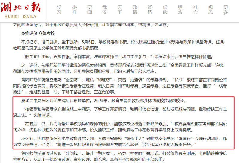 为贯彻落实教育部等九部门《“十四五”县域普通高中发展提升行动计划》等文件要求,加大对教育基础薄弱县普通高中帮扶力度,提升湖北省县中整体办学水平,省教育厅于2023年4月组织实施湖北省县中托管帮扶工程。全省75所高校及高中托管75所县中,公司对口托管县域普通高中麻城市第二中学。自结对帮扶工作开展以来,公司积极响应省教育厅关于县中托管帮扶的精神和公司党委决策,选派沈胜林博士担任挂职副董事长,积极联系公司多个部门,在教育科学研究、教师支持、实习实践、校园环境改造、校园文化建设等方面对麻城二中进行多方面、持续化的对口支持,积极推进并创造性地开展托管帮扶工作,助力麻城二中高质量发展方面取得良好社会反响,被多家媒体报道。