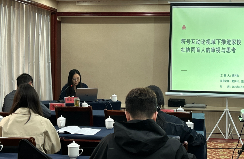 在研究生分论坛,教育管理专业硕士研究生蔡科欣同学进行了《符号互动论视域下推进家校社协同育人的审视与思考》的专题发言。